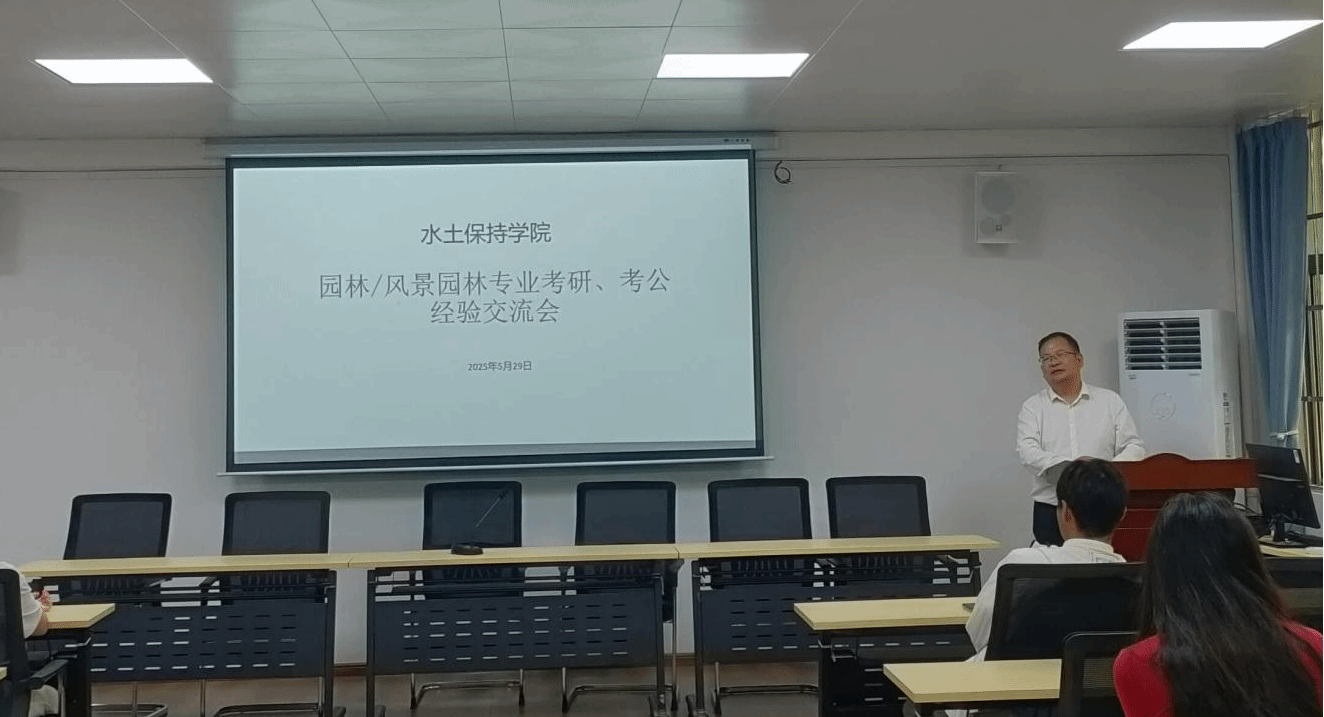 为精准赋能园林与风景园林专业学子升学就业规划,明晰备考方向、提升实战效能,5月29日,水土保持学院在逸夫水利楼B210成功举办考研考公经验交流会。学院党委副书记宋友根、班主任舒绮雯老师、肖孔钟老师亲临现场,与学子共同聆听优秀毕业生的备考智慧与成长心得。